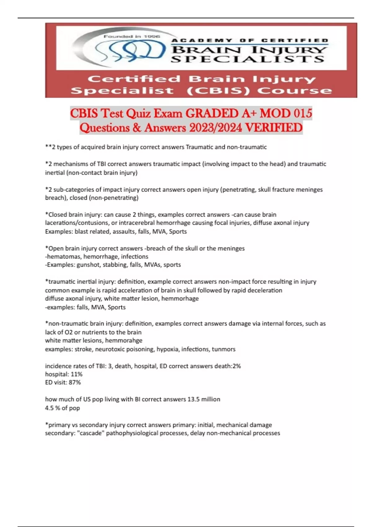 **2 types of acquired brain injury correct answers Traumatic and non-traumatic