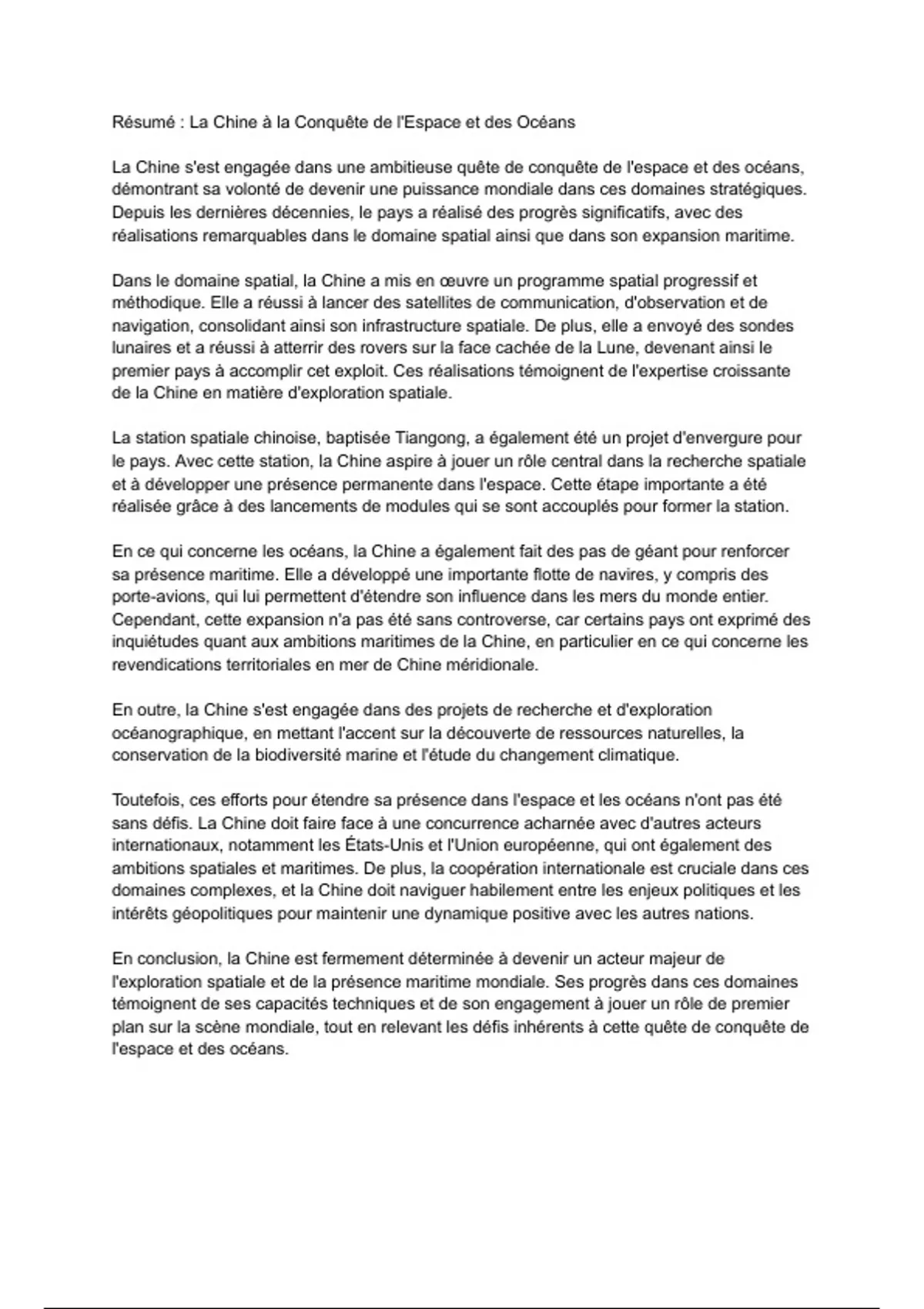 Résumé : La Chine à la Conquête de l'Espace et des Océans