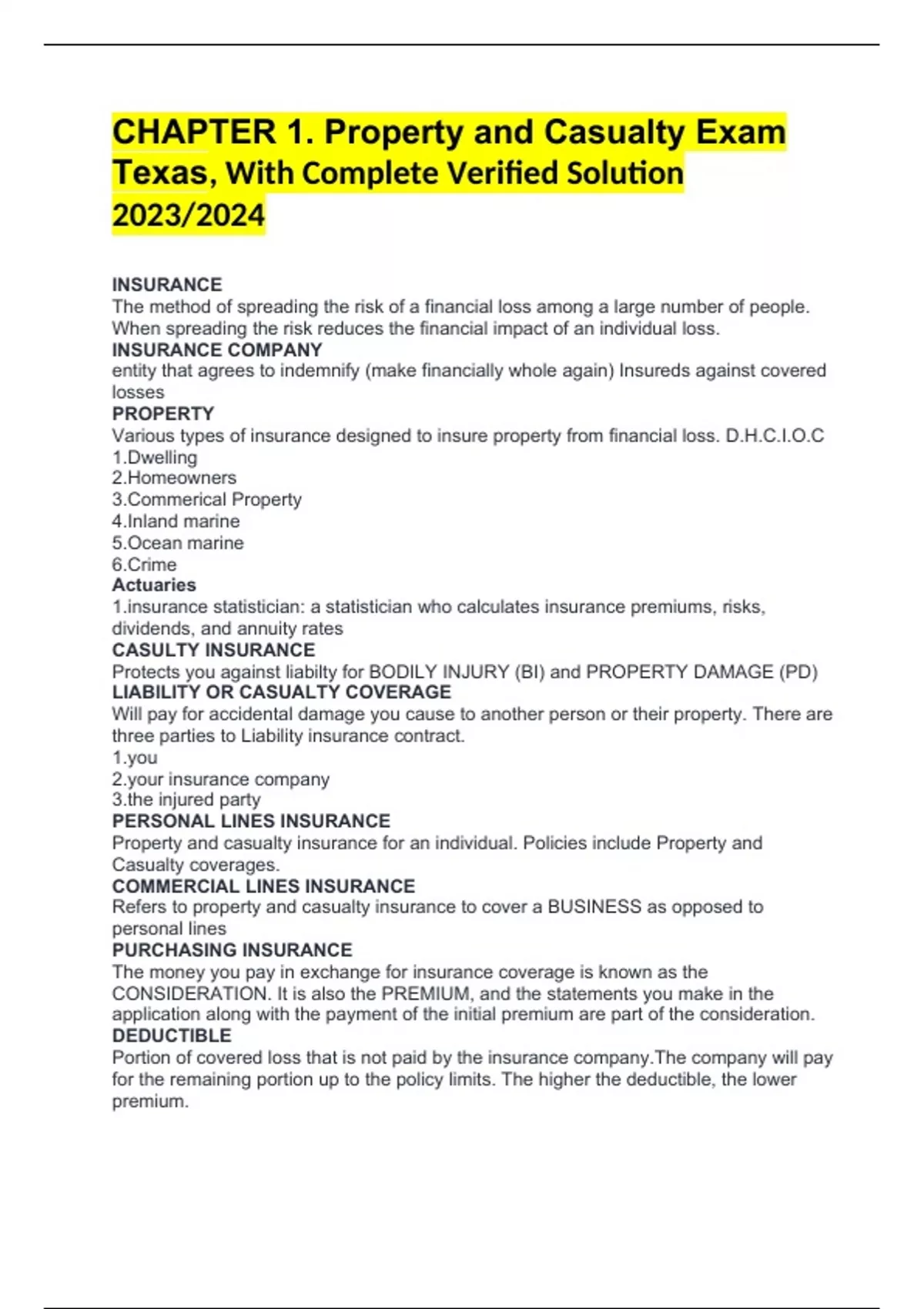 Various types of insurance designed to insure property from financial loss. D.H.C.I.O.C