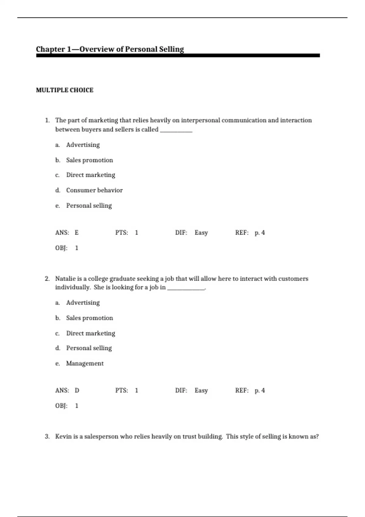 Chapter 1—Overview of Personal Selling