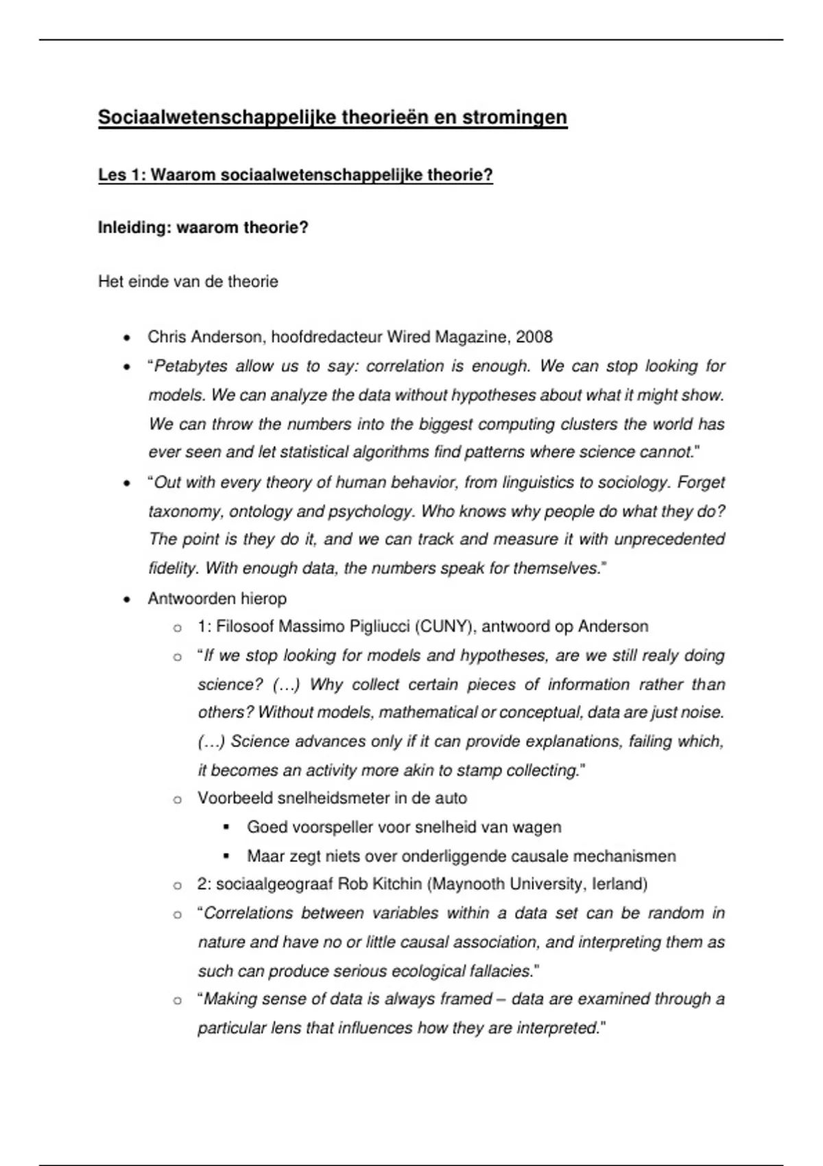 Les 1: Waarom sociaalwetenschappelijke theorie?