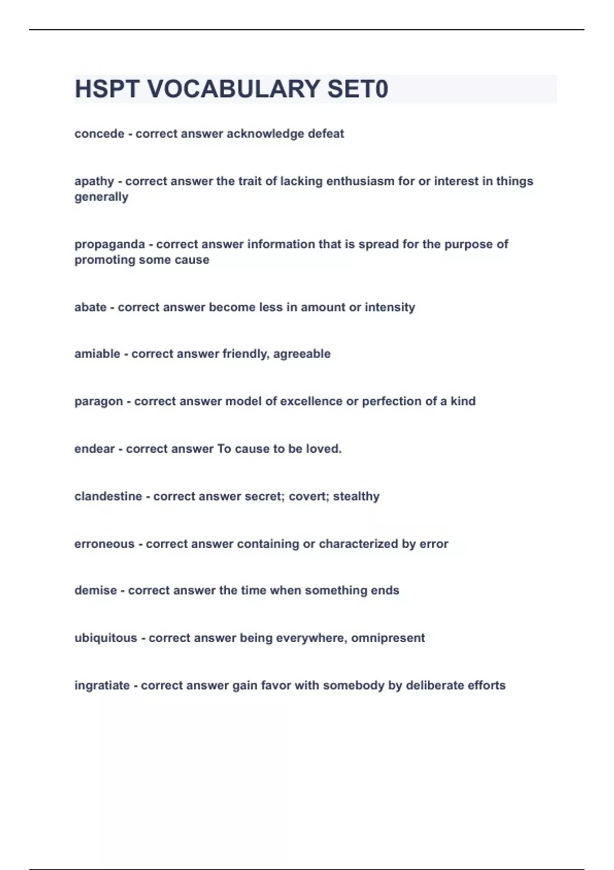 HSPT VOCABULARY SET0|UPDATED&VERIFIED|100% SOLVED|GUARANTEED SUCCESS
