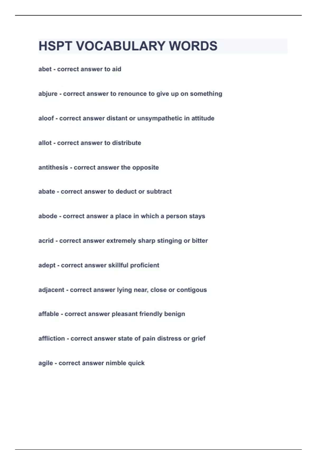 agile - correct answer nimble quick admant - correct answer hard stubborn