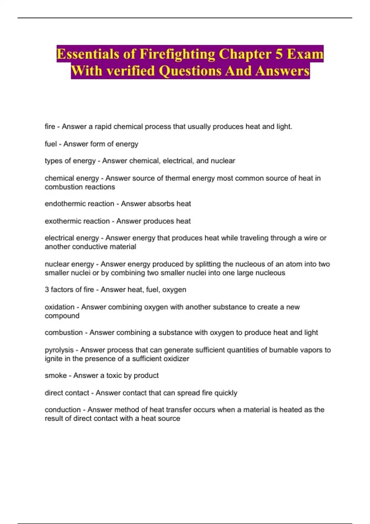 Essentials of Firefighting Chapter 5 Exam With verified Questions And Answers...