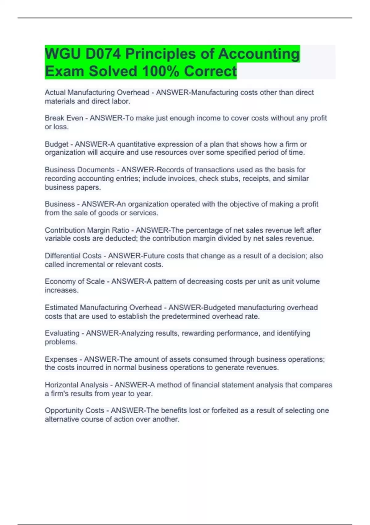 WGU D074 Principles of Accounting Exam Solved 100% Correct