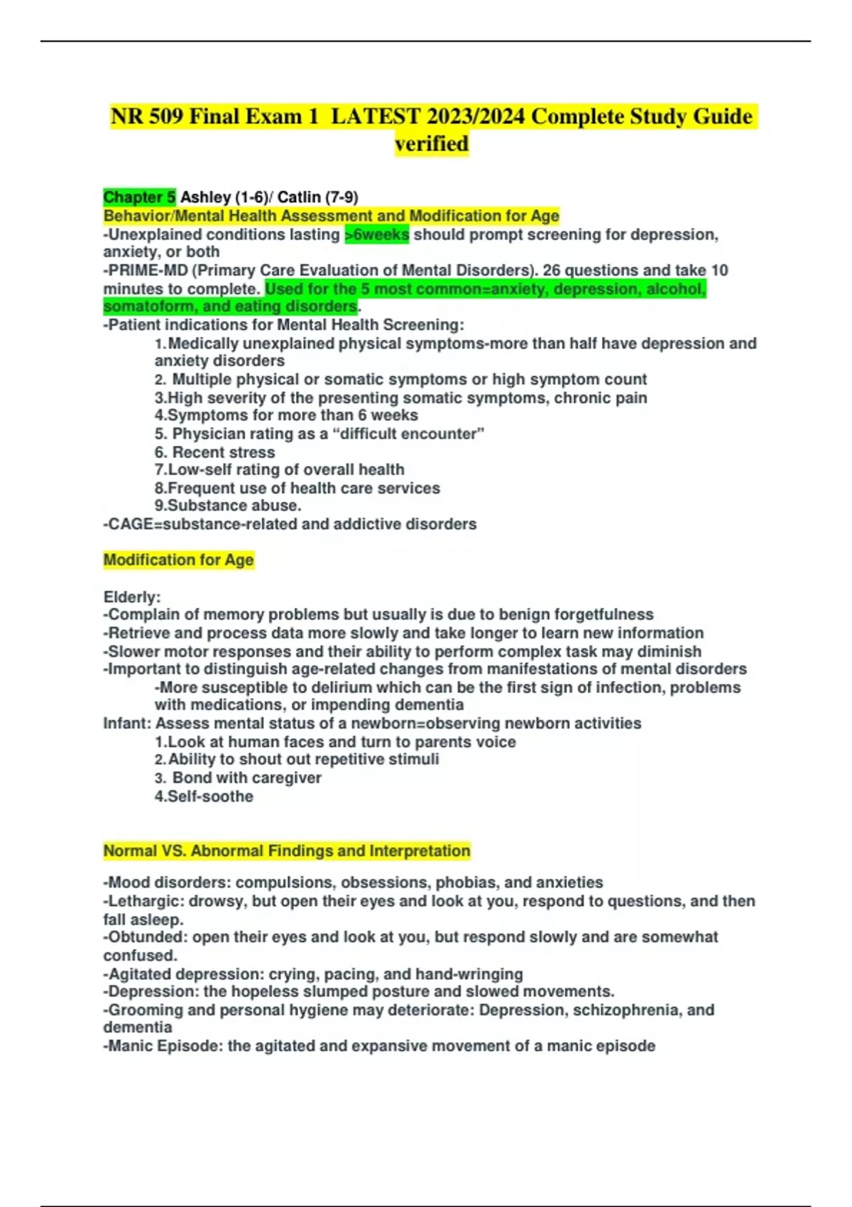 NR 509 Final Exam 1 LATEST 2023/2024 Complete Study Guide verified