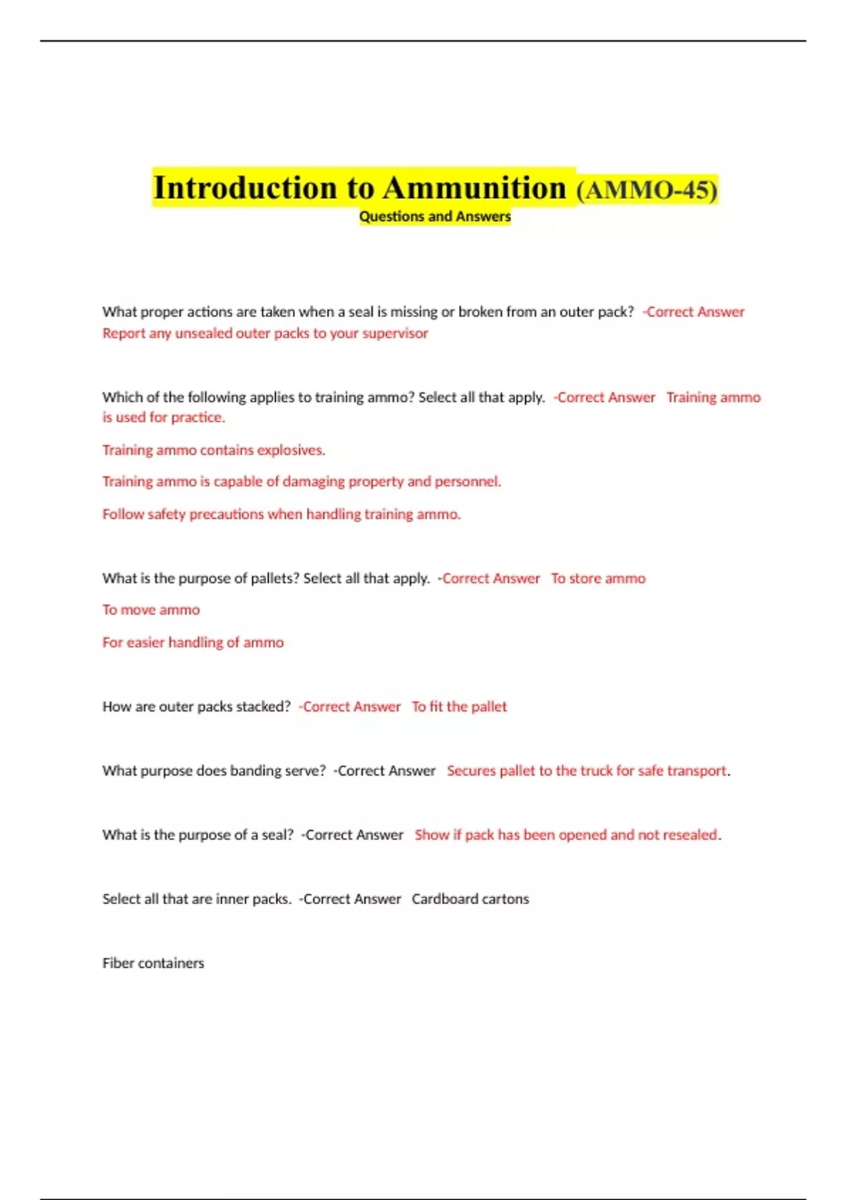 What purpose does banding serve? -Correct Answer Secures pallet to the truck for safe transport.