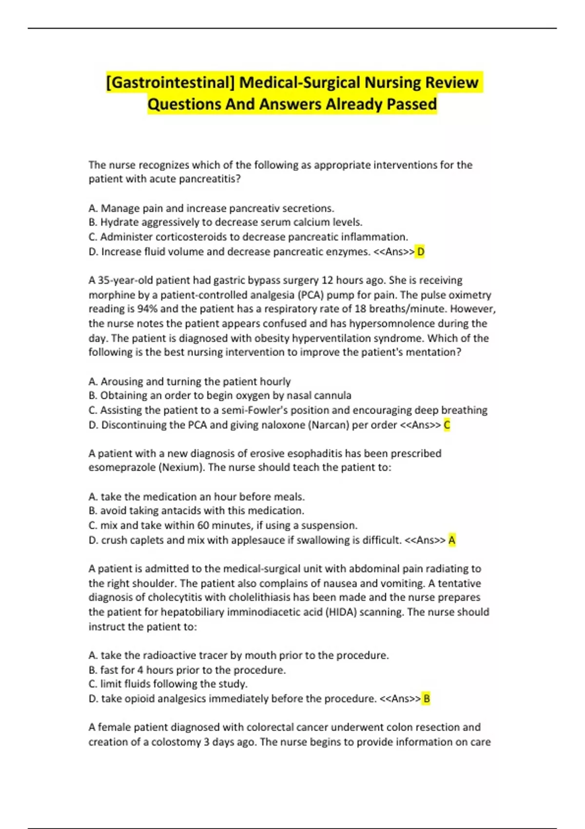 [Gastrointestinal] Medical-Surgical Nursing Review Questions And Answers Already Passed