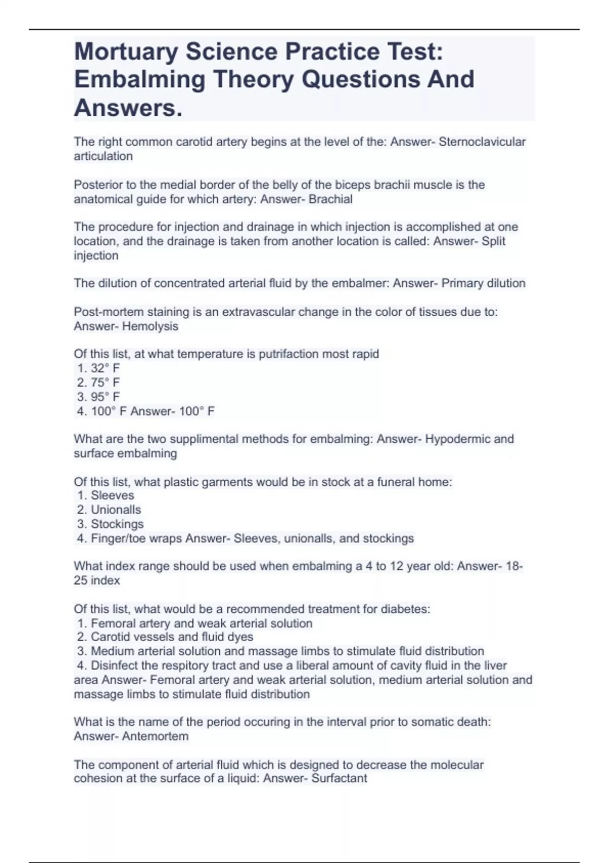 Mortuary Science Practice Test: Embalming Theory Questions And Answers.