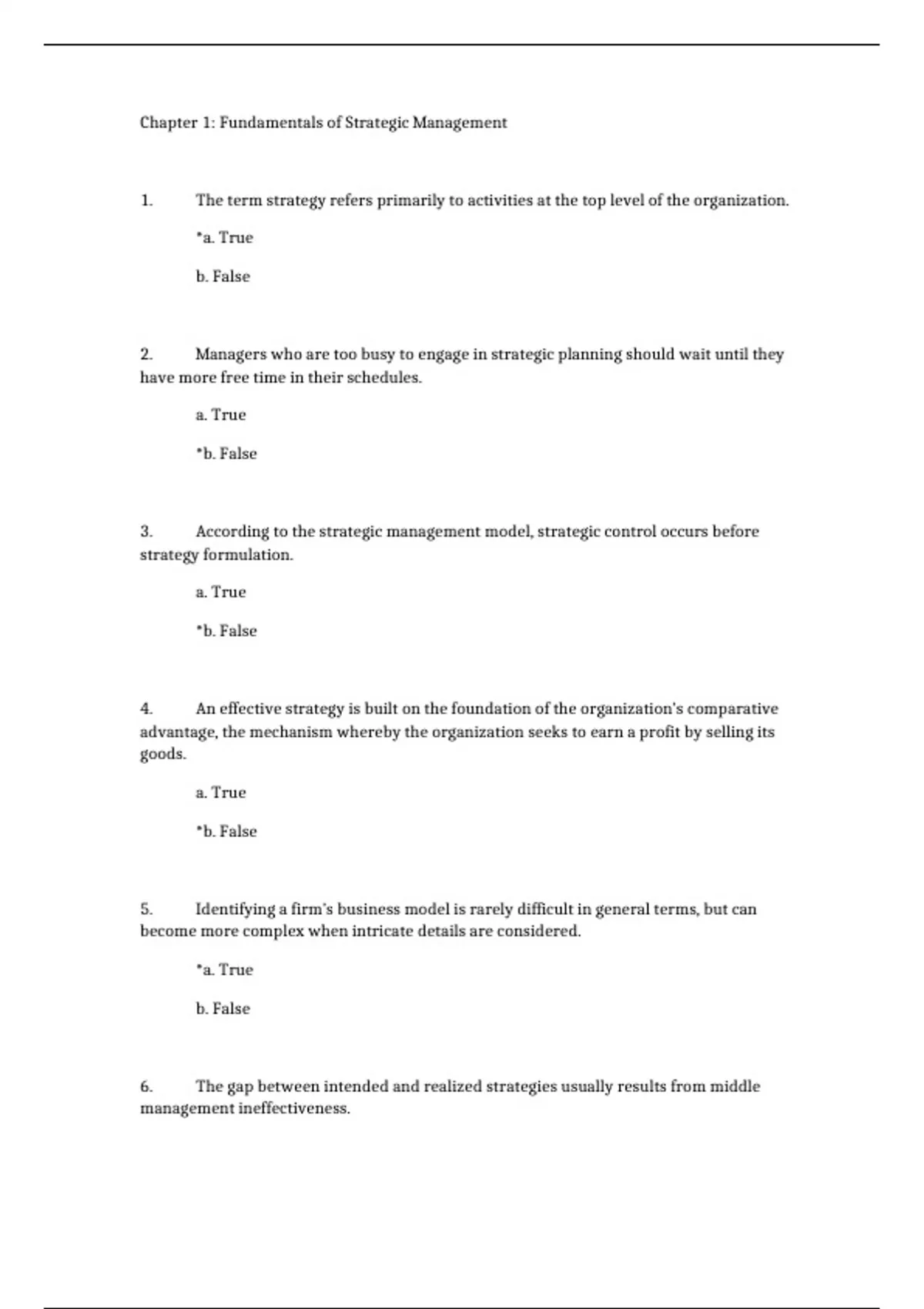 1. The term strategy refers primarily to activities at the top level of the organization.