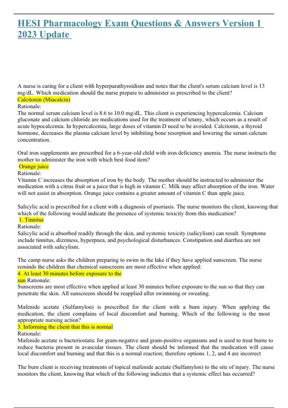acute hypocalcemia. In hypercalcemia, large doses of vitamin D need to be avoided. Calcitonin, a thyroid
