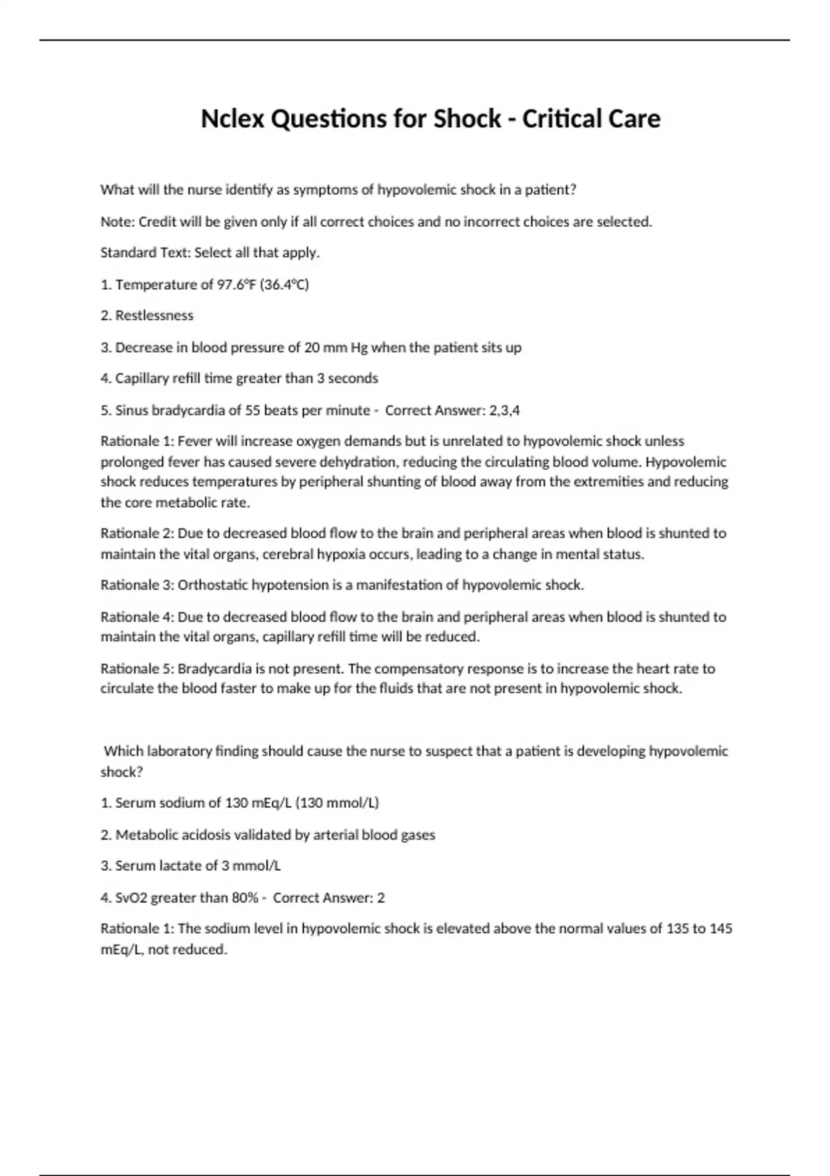 Rationale 1: Fever will increase oxygen demands but is unrelated to hypovolemic shock unless