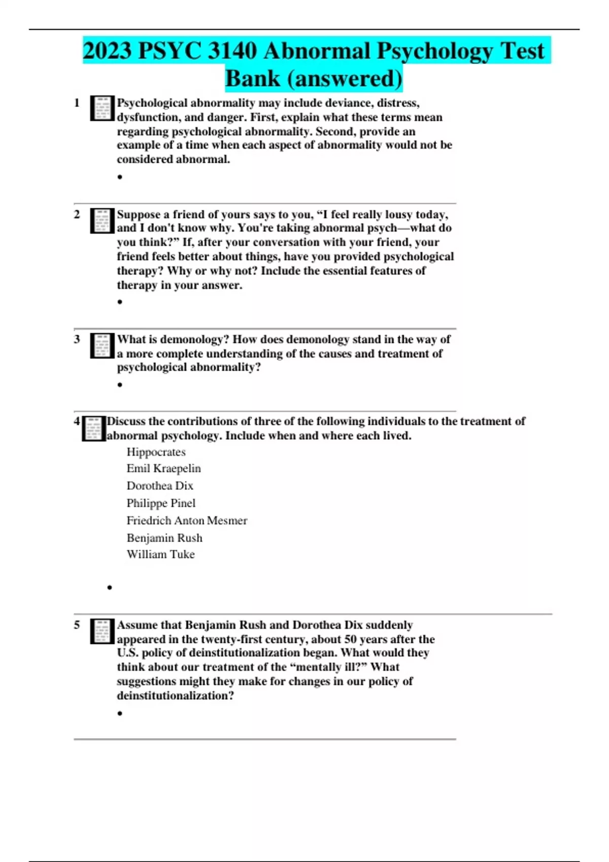 2023 PSYC 3140 Abnormal Psychology Test Bank (answered)