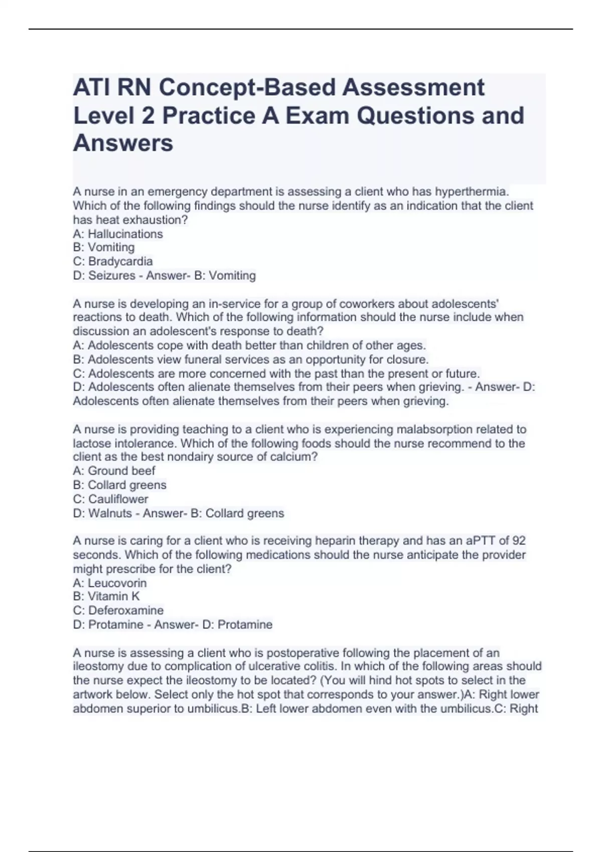 ATI RN Concept-Based Assessment Level 2 Practice A Exam Questions and Answers