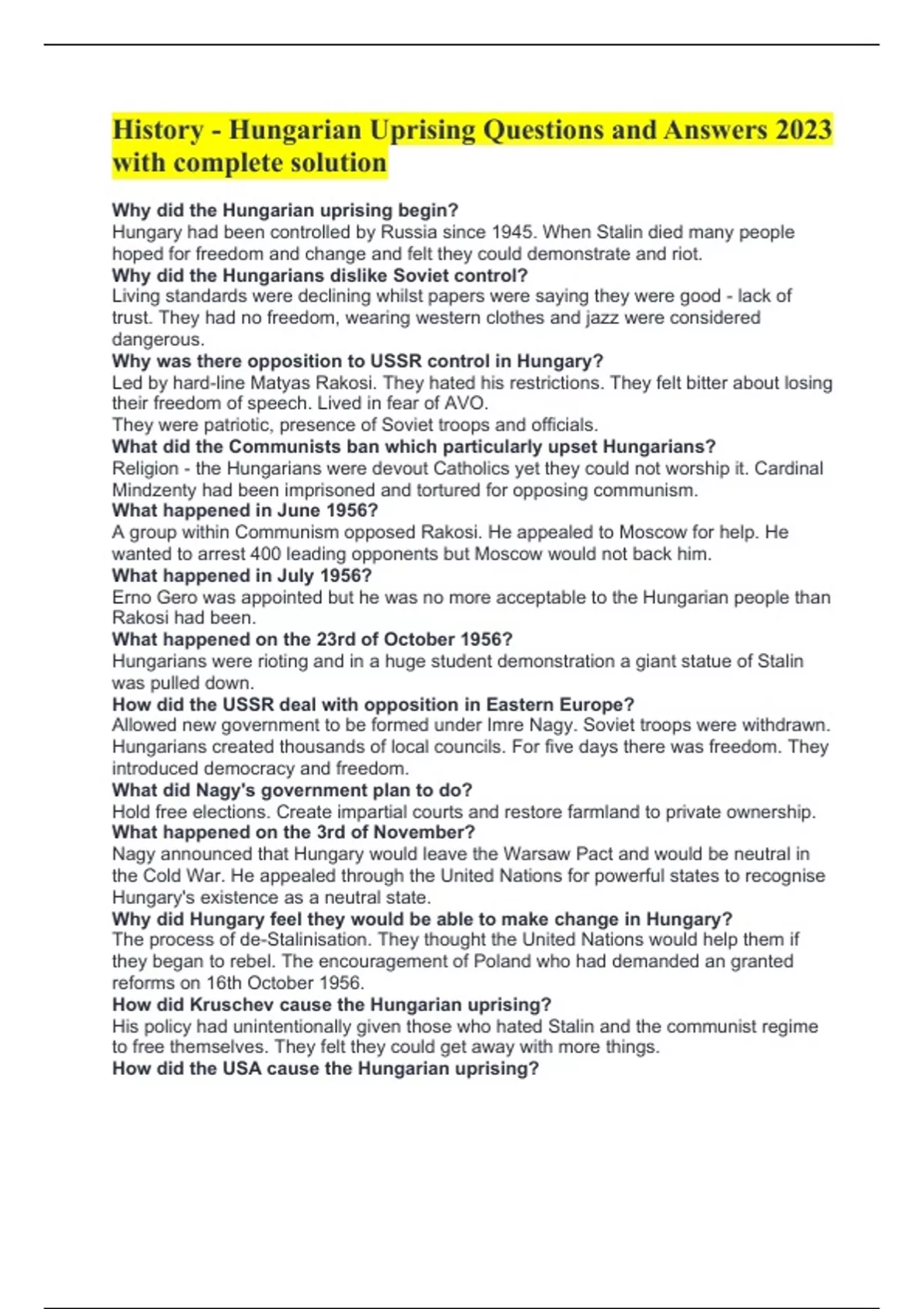Hungary had been controlled by Russia since 1945. When Stalin died many people