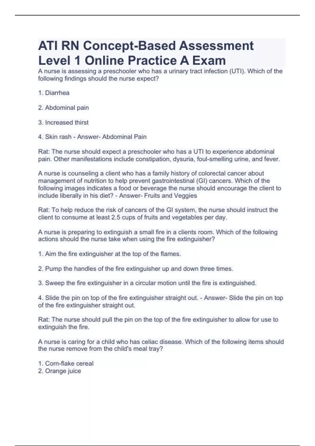 ATI RN Concept-Based Assessment Level 1 Online Practice A Exam
