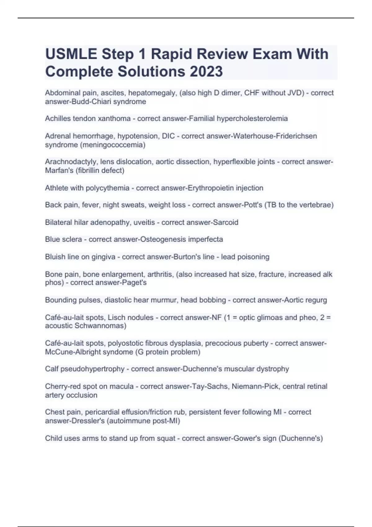 USMLE Step 1 Rapid Review Exam With Complete Solutions 2023