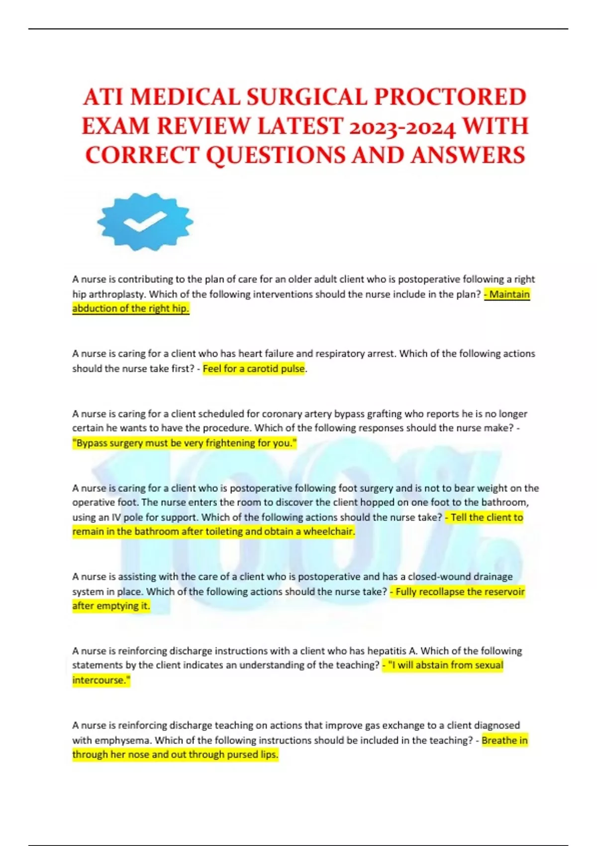 ATI MEDICAL SURGICAL PROCTORED EXAM REVIEW LATEST WITH CORRECT QUESTIONS AND ANSWERS