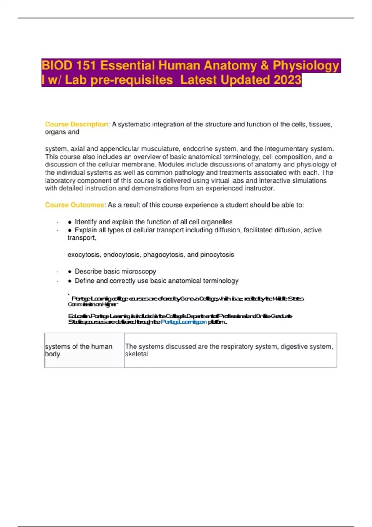 BIOD 151 Essential Human Anatomy & Physiology Lab pre-requisites Latest Updated 2023