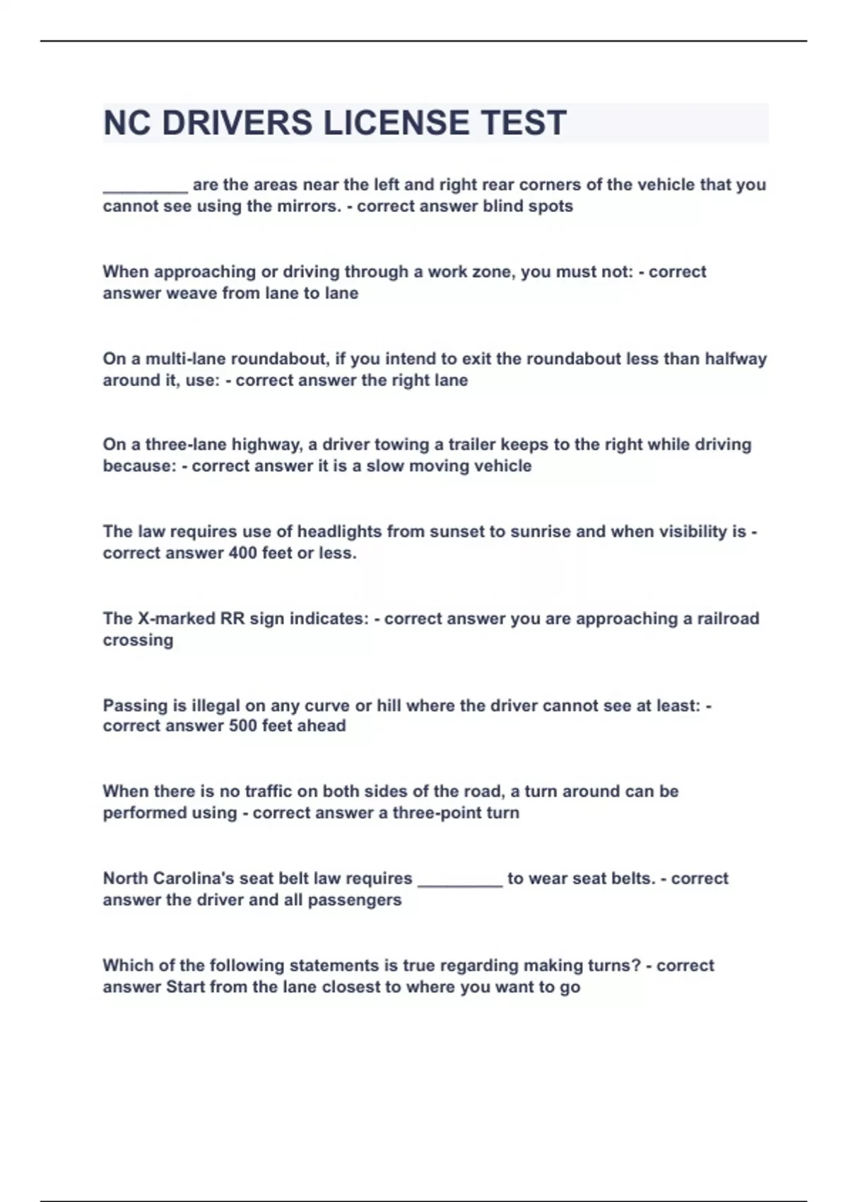 NC DRIVERS LICENSE TEST|UPDATED&VERIFIED|100% SOLVED|GUARANTEED SUCCESS