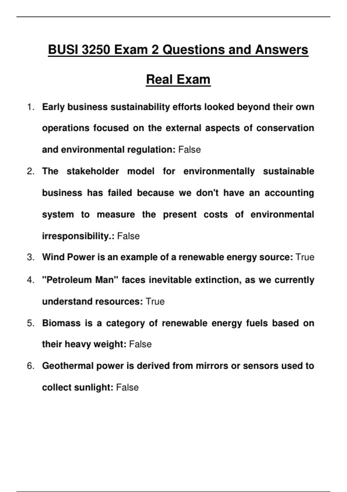 BUSI 3250 Exam 2 Questions and Answers Real Exam 2023