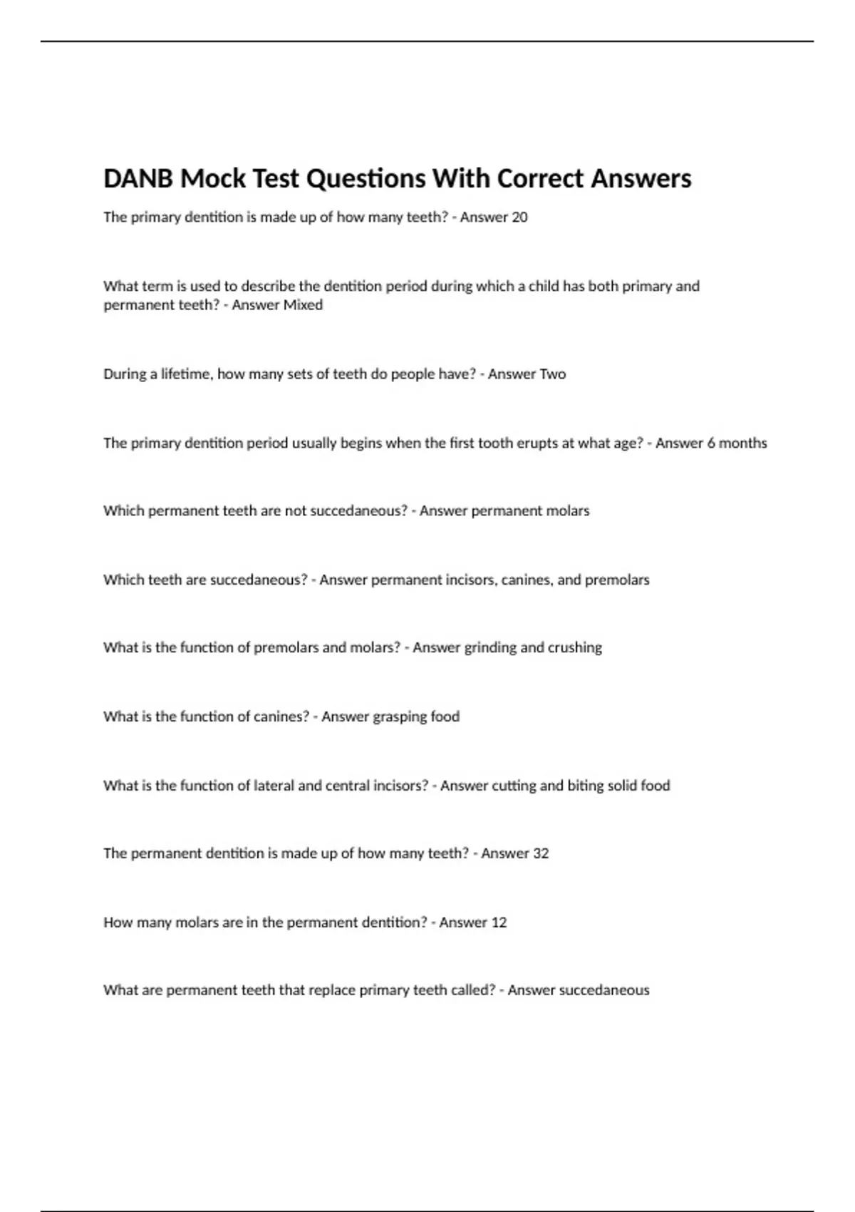 danb mock test questions with correct answers