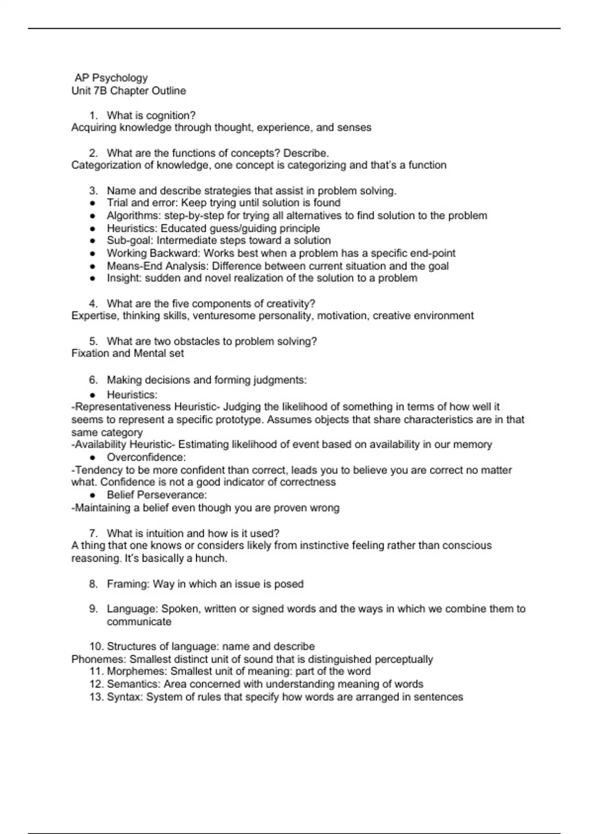Summary of 2 pages for the course AP Psychology at Nicholls State University (Cognition)