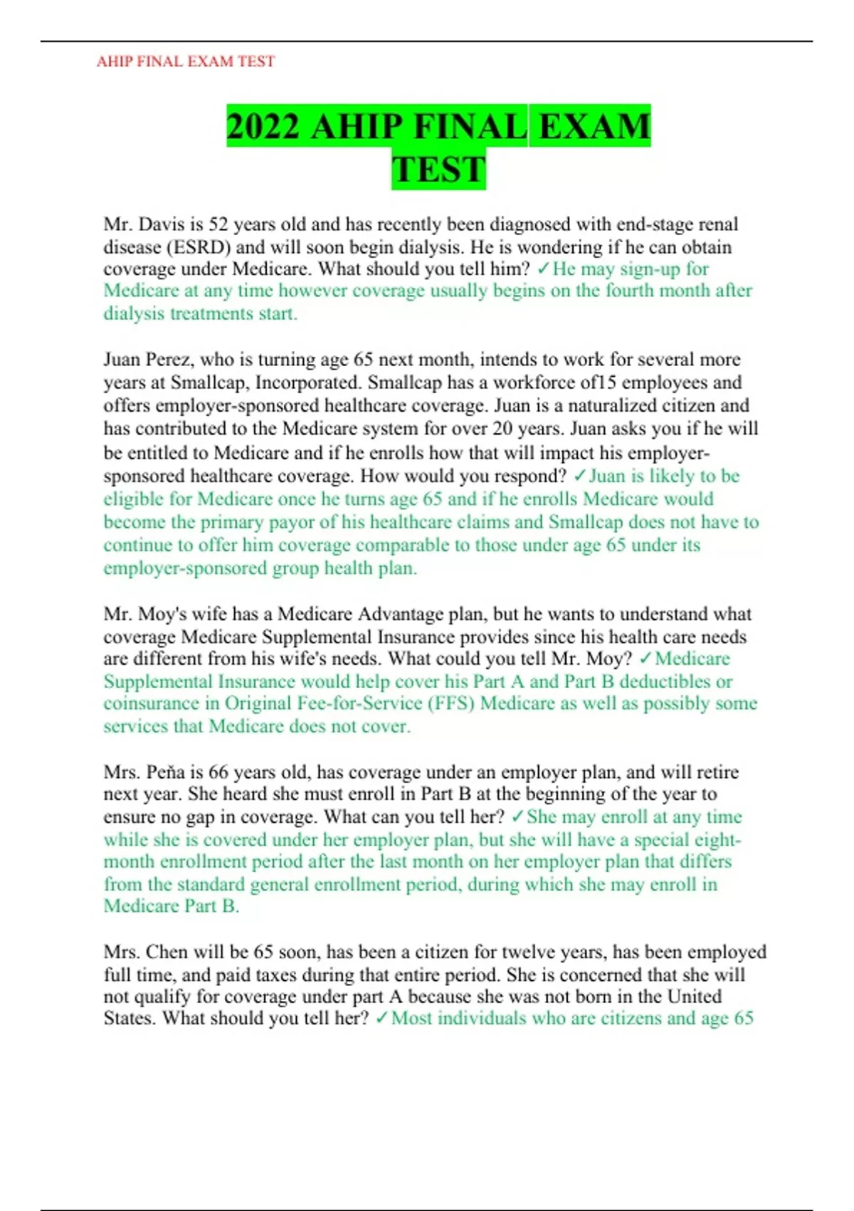 AHIP FINAL EXAM TEST/AHIP FINAL EXAM TEST