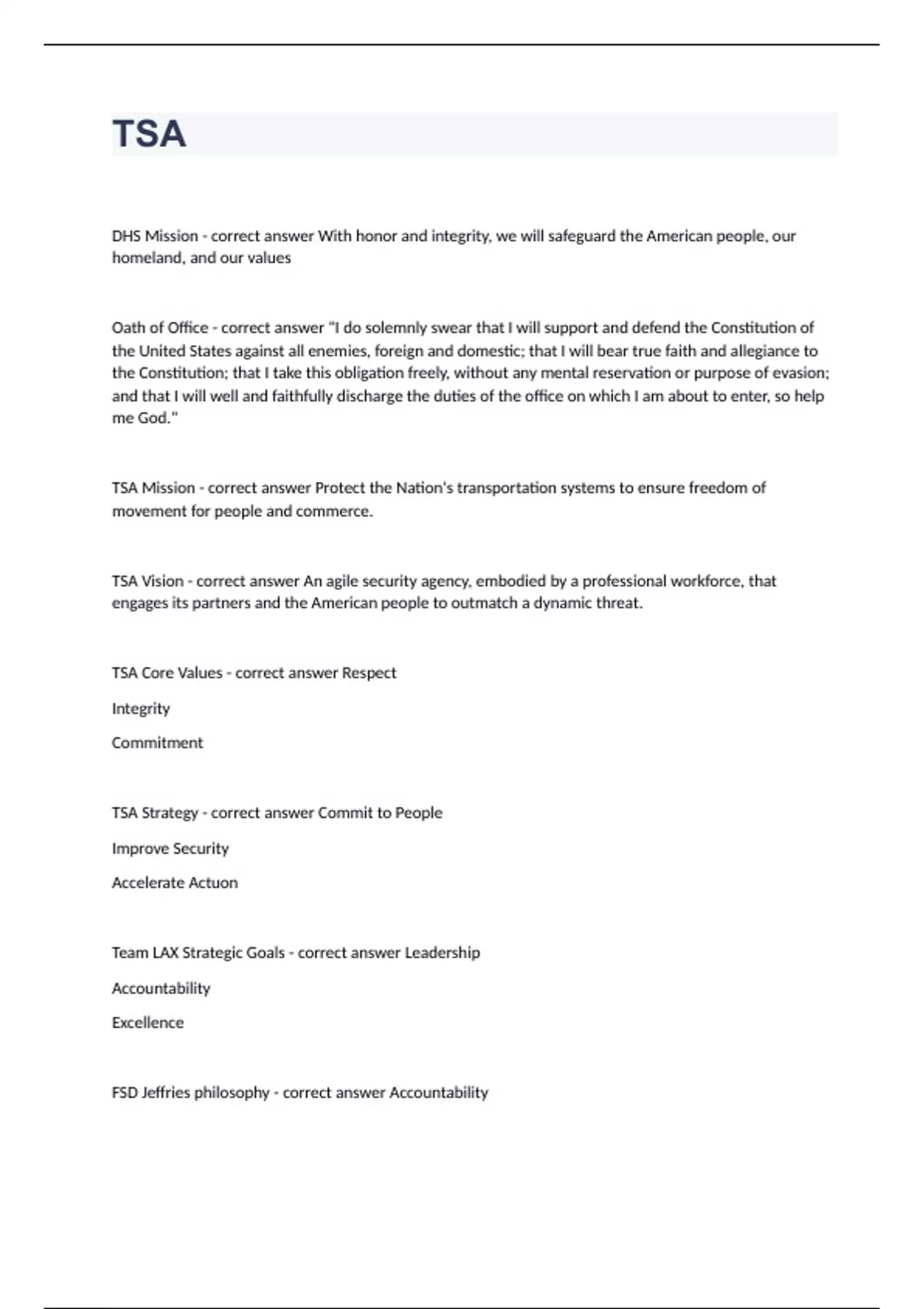 TSA question and answers graded A+ 2023 passed