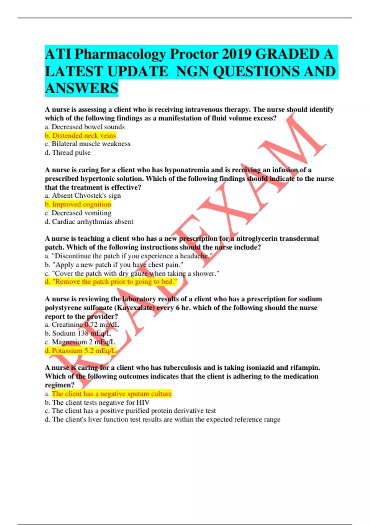 ATI Pharmacology Proctor 2019 GRADED A LATEST UPDATE NGN QUESTIONS AND ANSWERS
