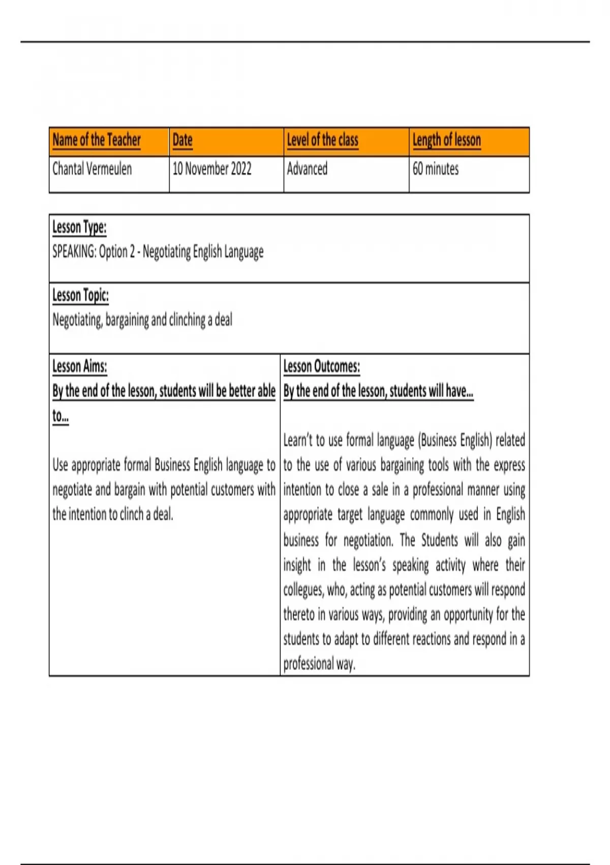 Chantal Vermeulen 10 November 2022 Advanced 60 minutes
