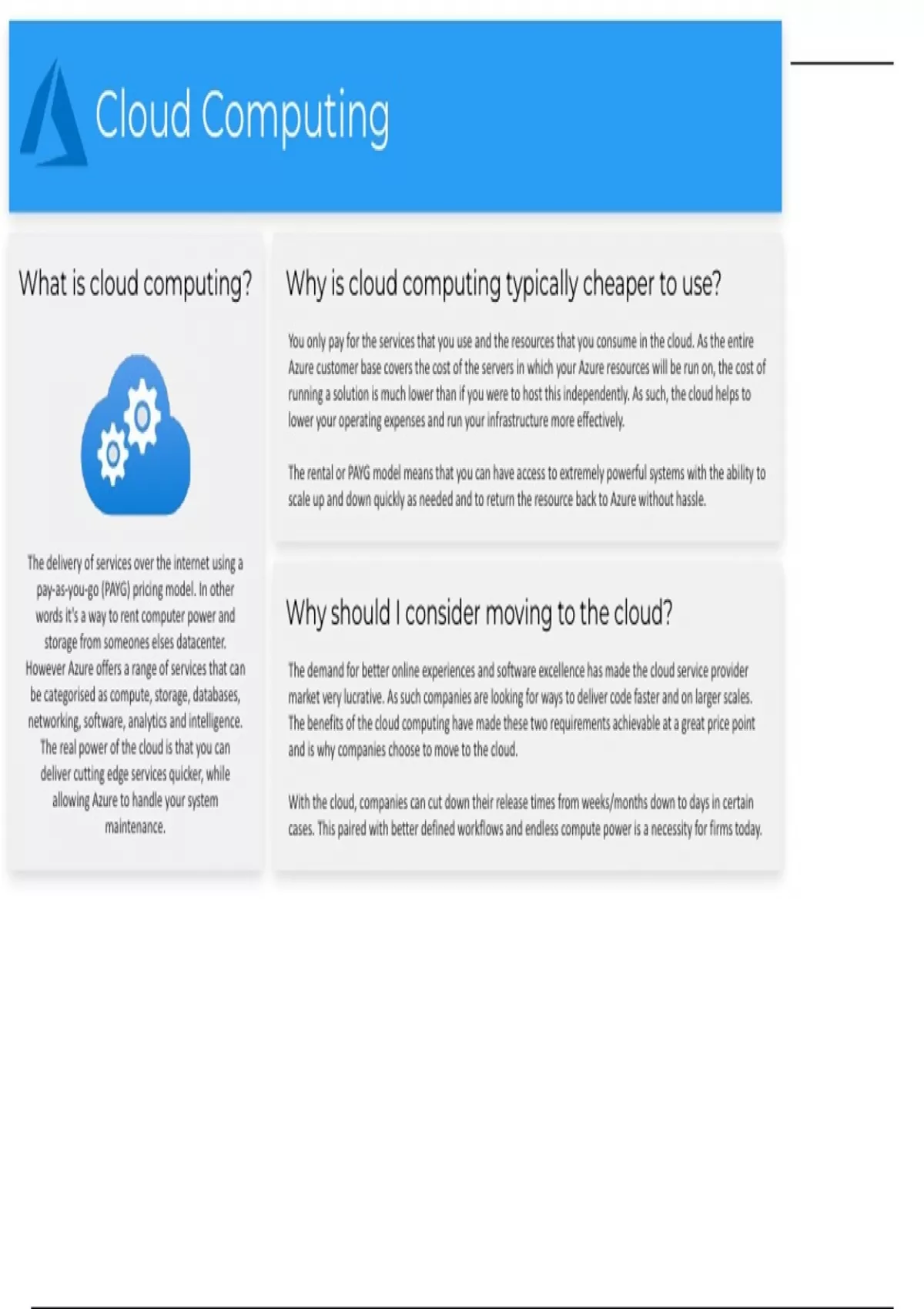 In other words it's a way to rent computer Why should I consider moving to the cloud?