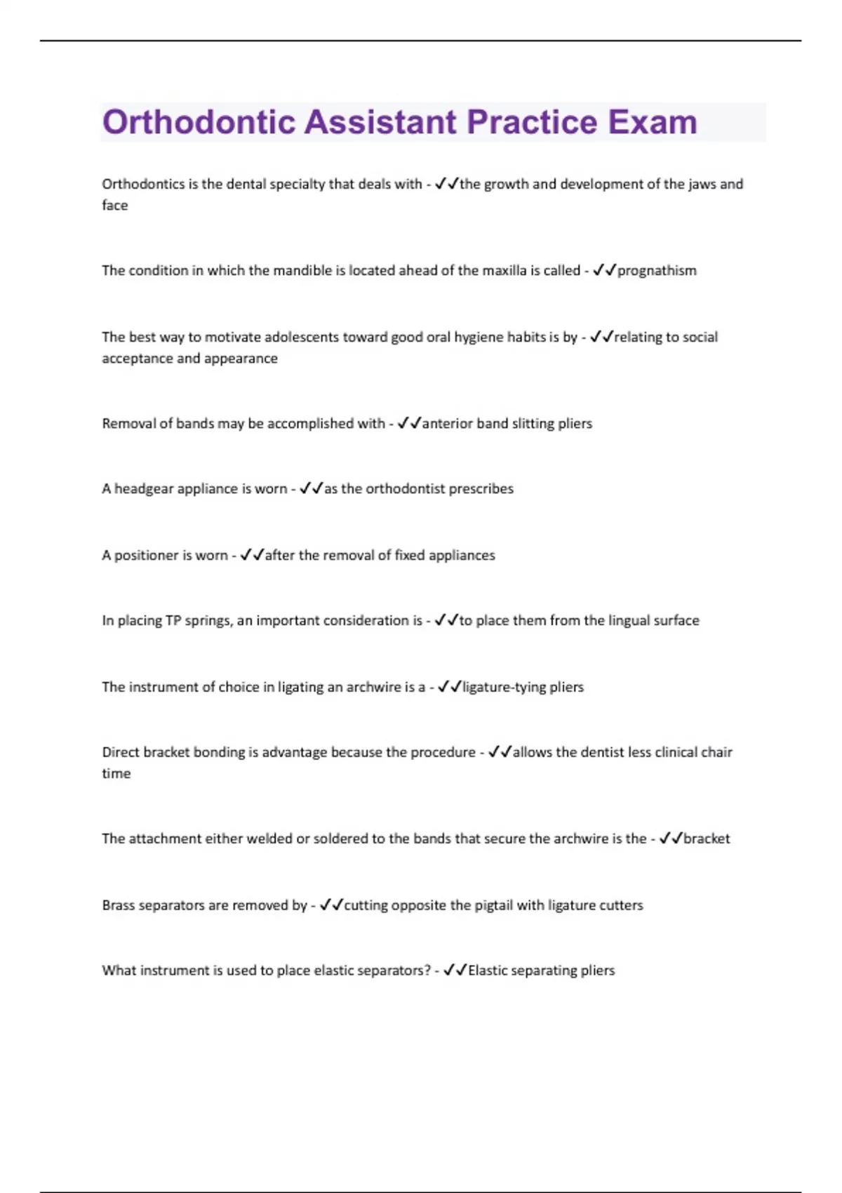 Orthodontic Assistant Practice Exam | 98 Questions and Answers 2023 with complete solution