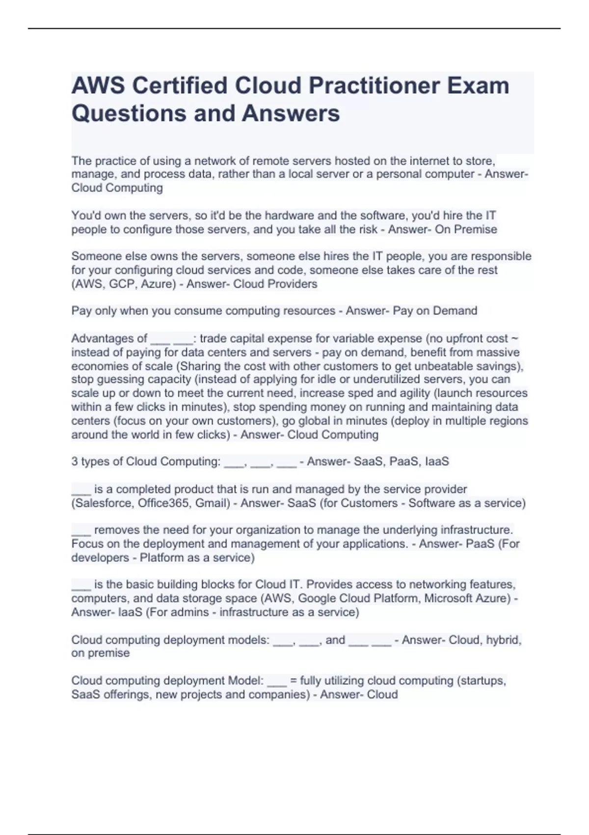 AWS Certified Cloud Practitioner Exam Questions and Answers
