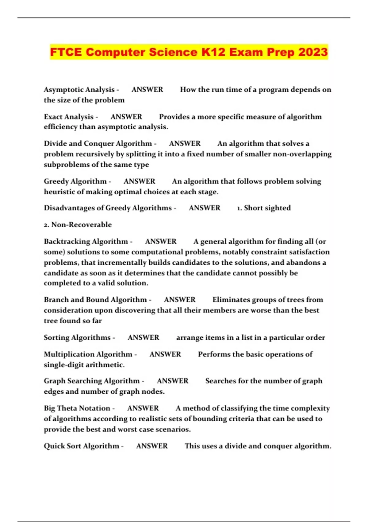 FTCE Computer Science K12 Exam Prep 2023...