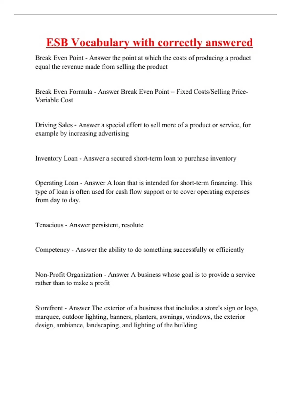 ESB Vocabulary with correctly answered