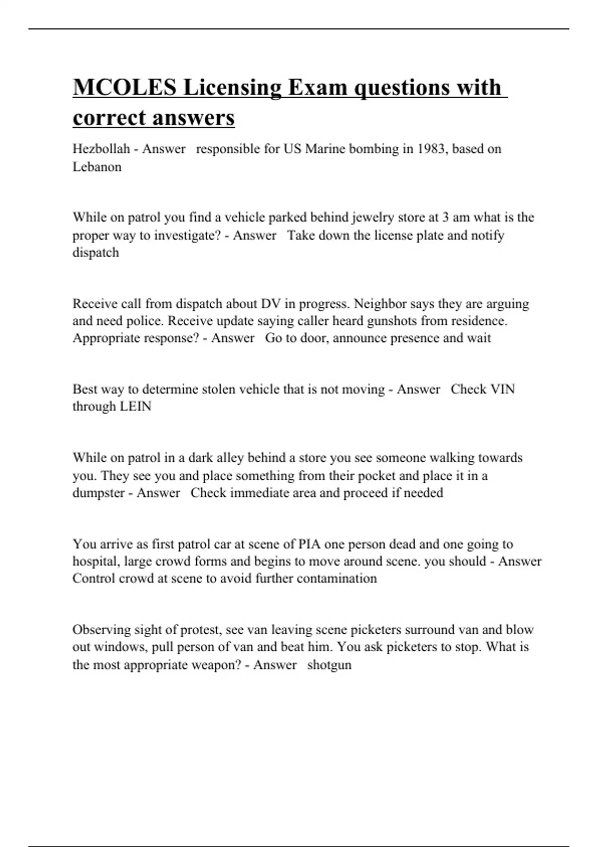 mcoles licensing exam questions with correct answe