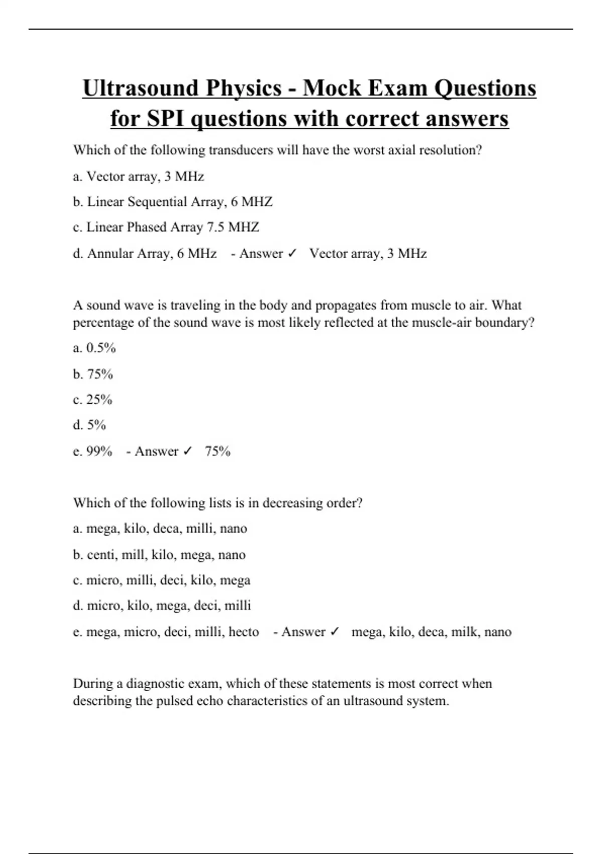 Ultrasound Physics - Mock Exam Questions for SPI questions with correct answers