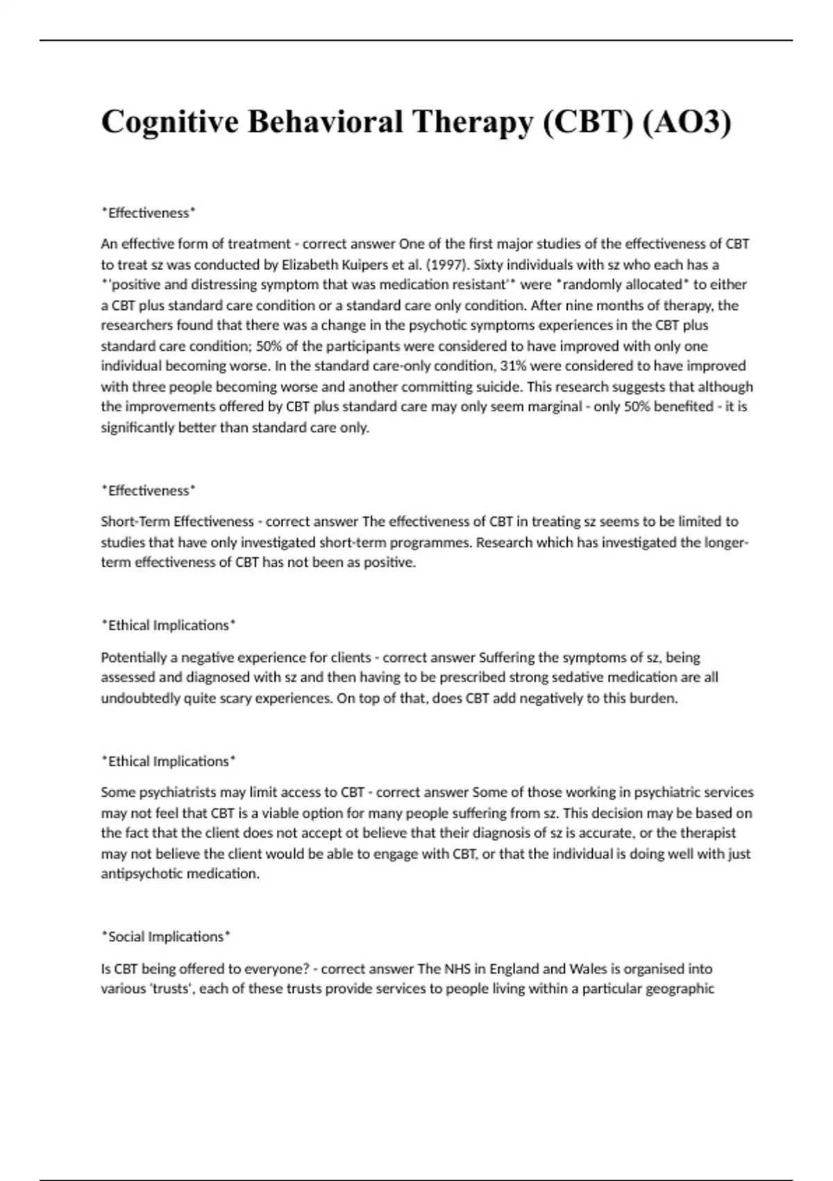 An effective form of treatment - correct answer One of the first major studies of the effectiveness of CBT