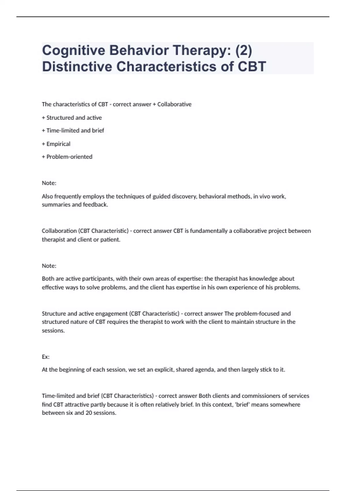 Cognitive Behavior Therapy (2) Distinctive Characteristics of CBT fully solved 2023
