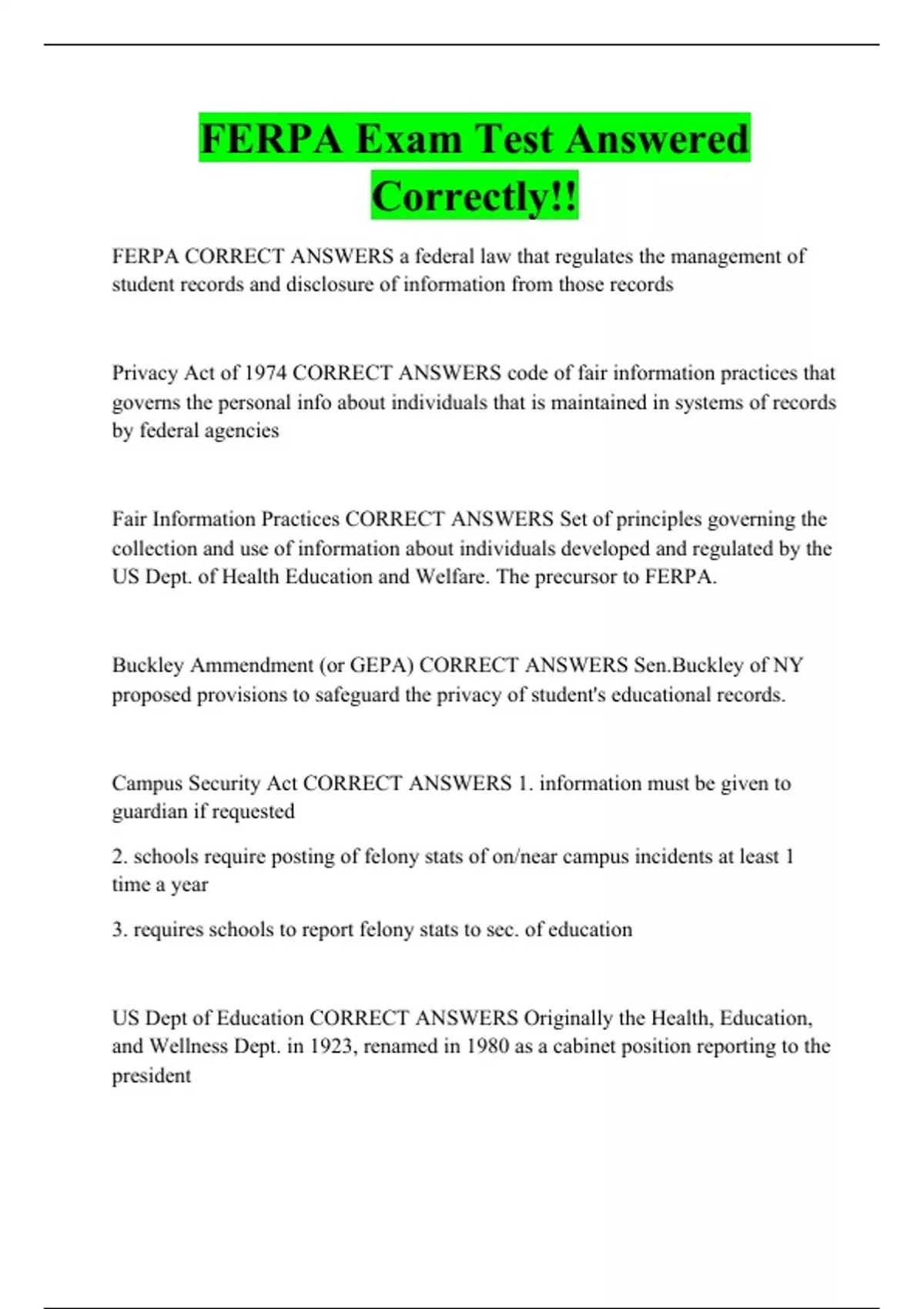 FERPA Exam Test Answered Correctly!!