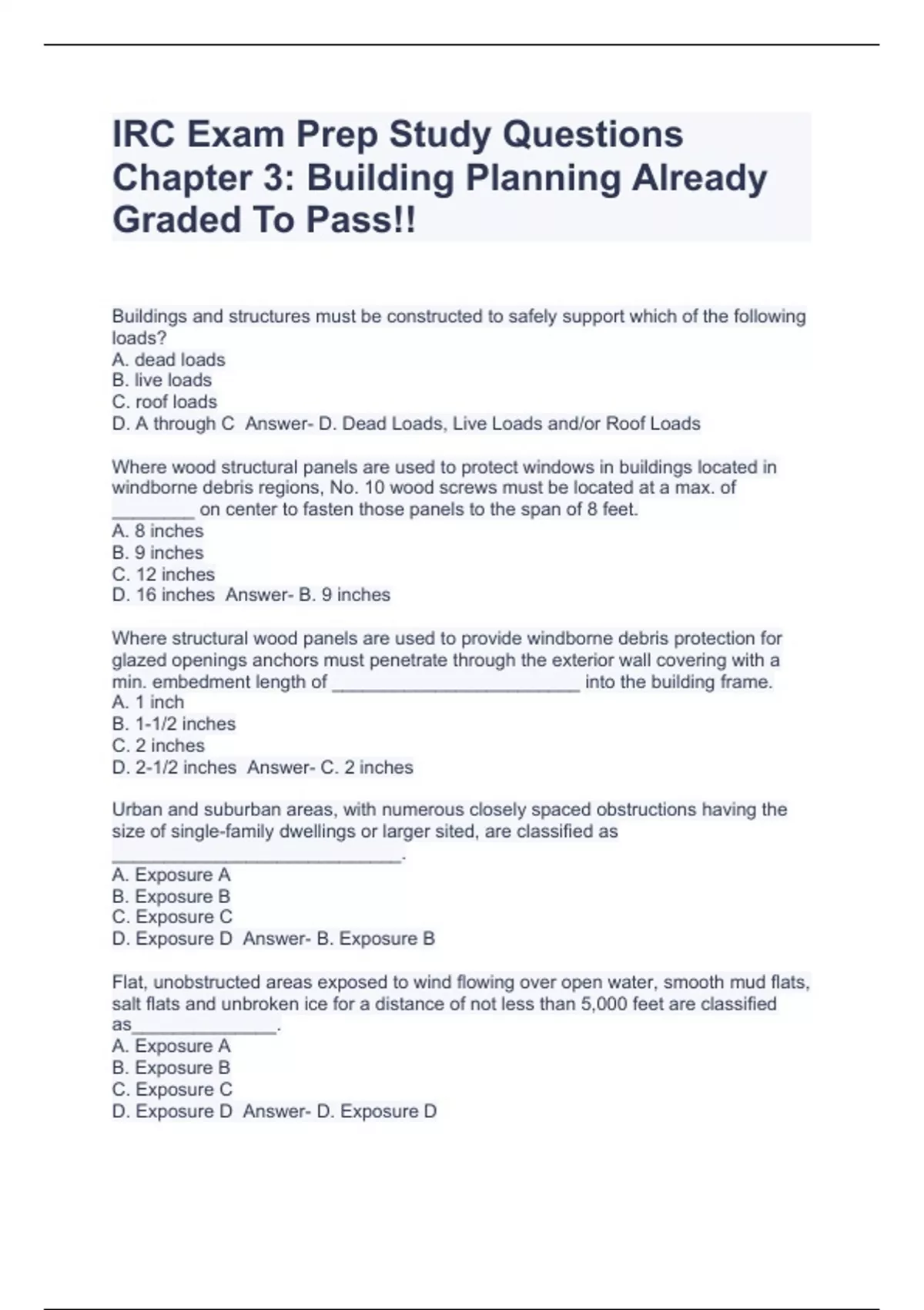 IRC Exam Prep Study Questions Chapter 3: Building Planning Already Graded To Pass!!