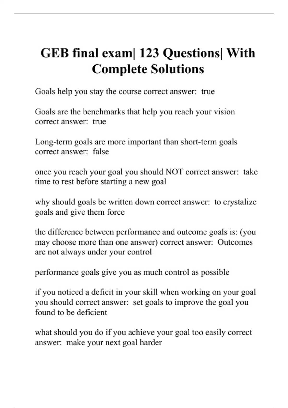 GEB final exam| 123 Questions| With Complete Solutions