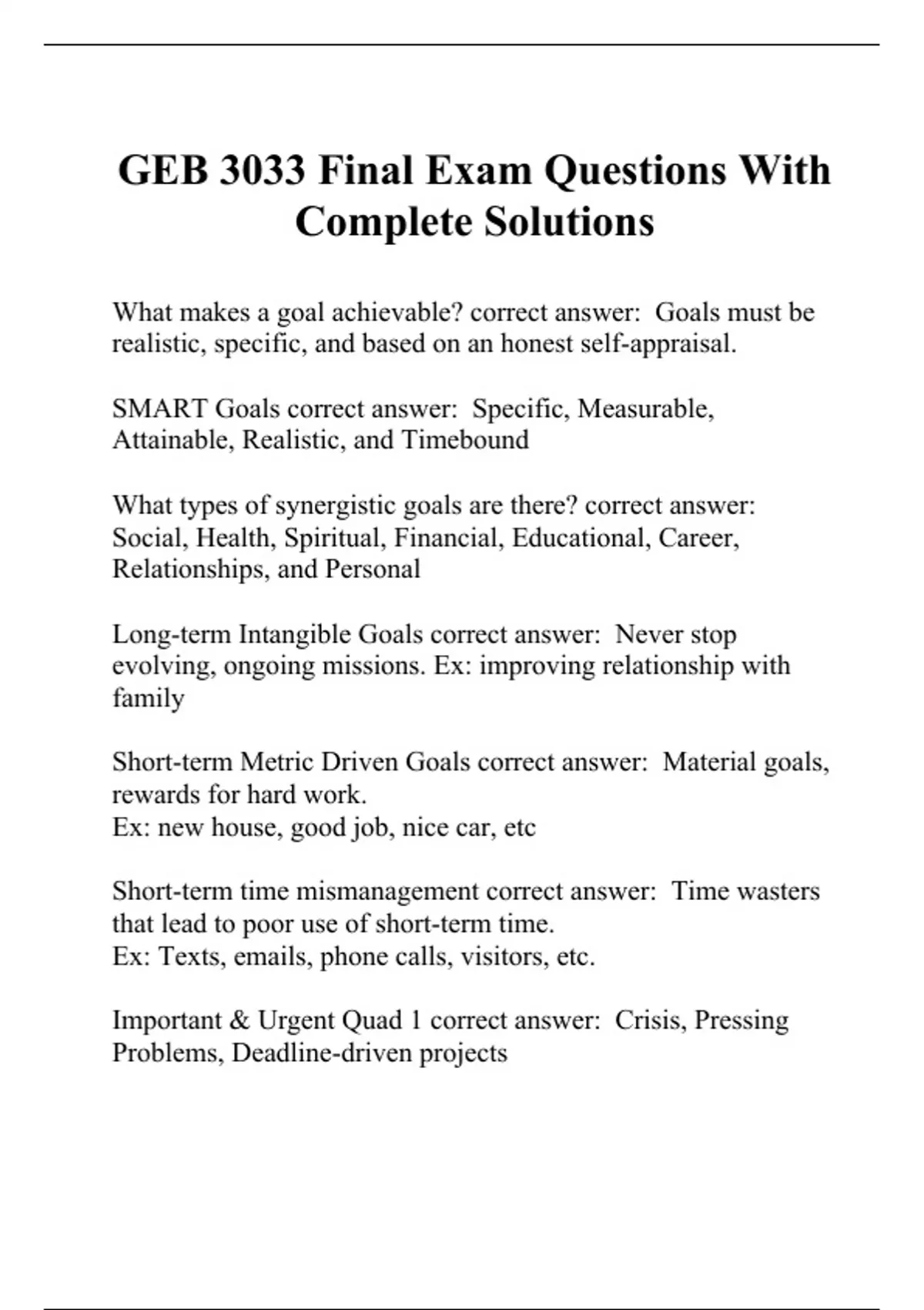 GEB 3033 Final Exam Questions With Complete Solutions