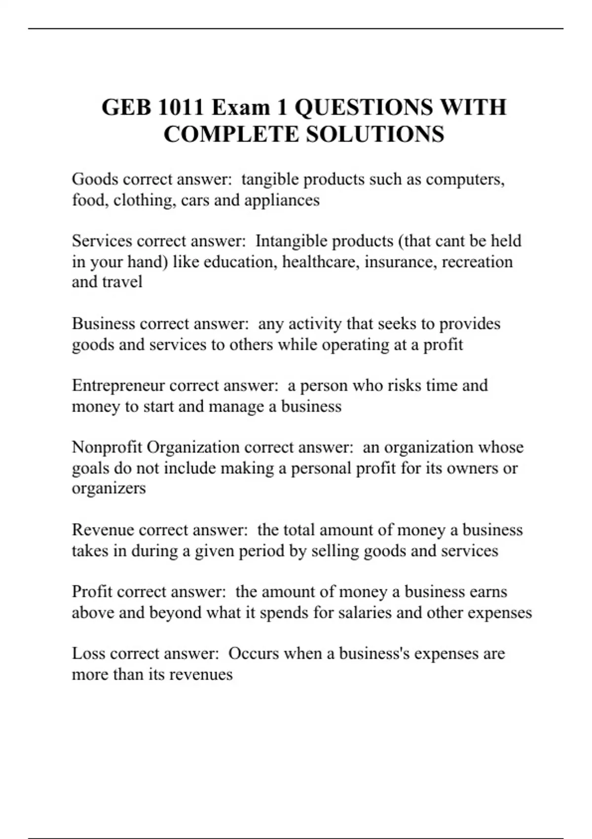 GEB 1011 Exam 1 QUESTIONS WITH COMPLETE SOLUTIONS