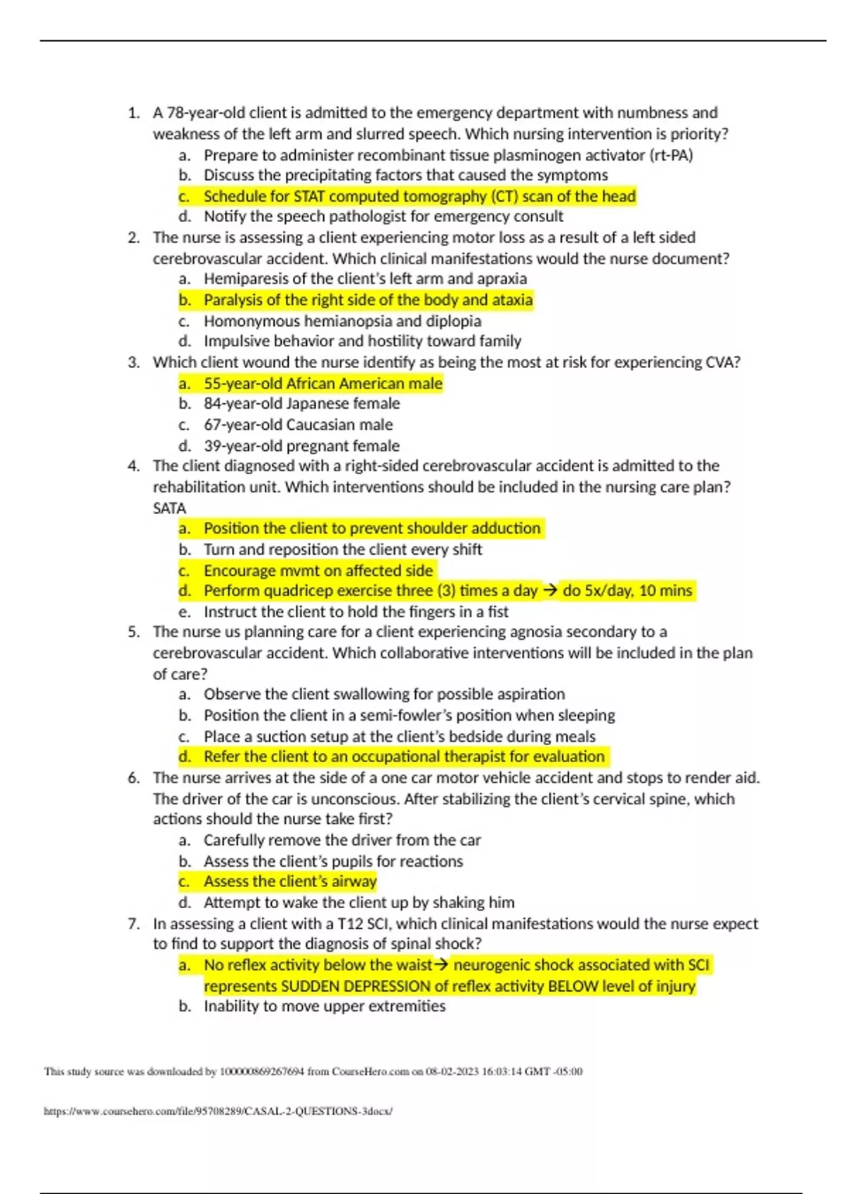 NURS 3312 CASAL 2 QUESTIONS 3 2023.
