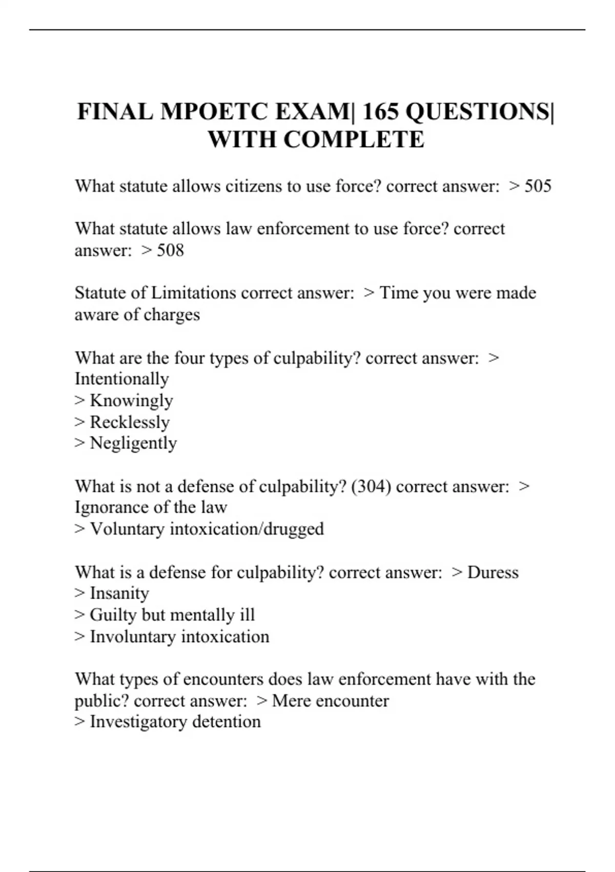 FINAL MPOETC EXAM| 165 QUESTIONS| WITH COMPLETE