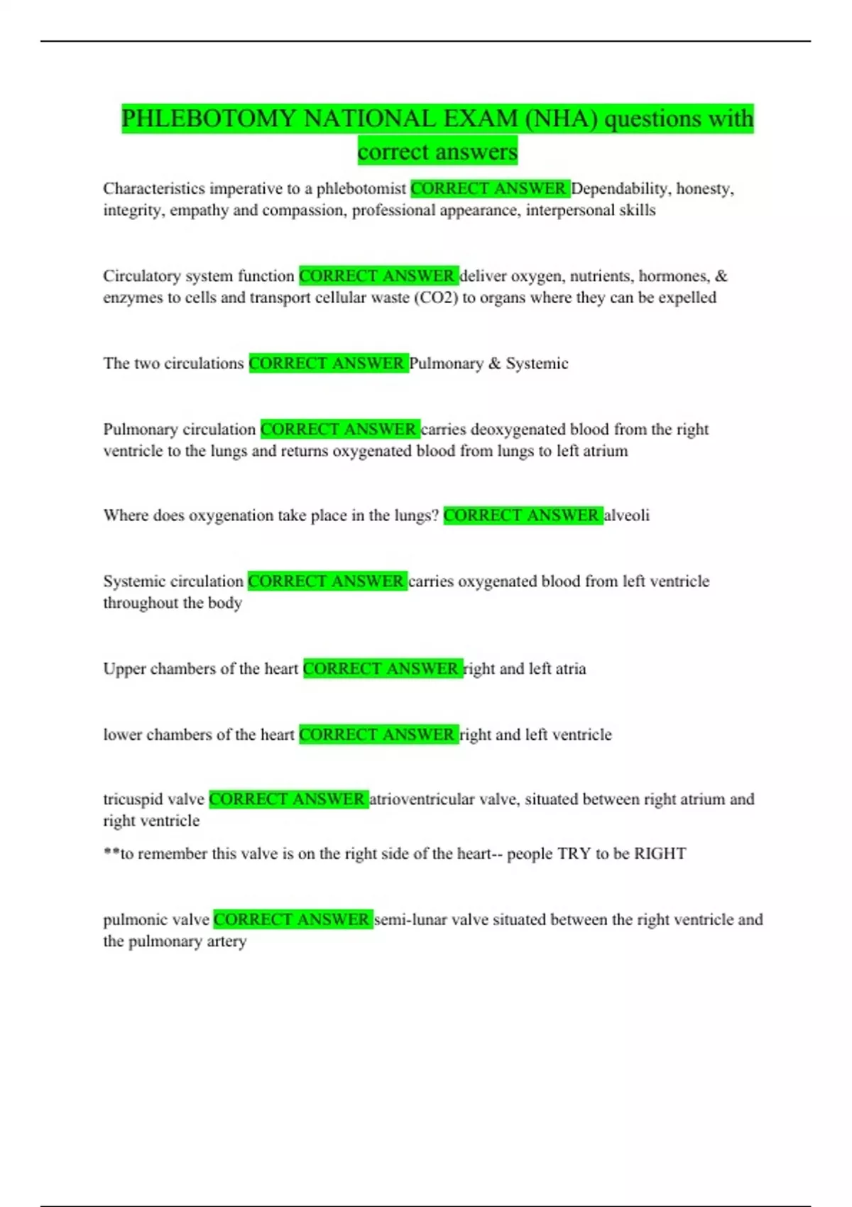 PHLEBOTOMY NATIONAL EXAM (NHA) questions with correct answers