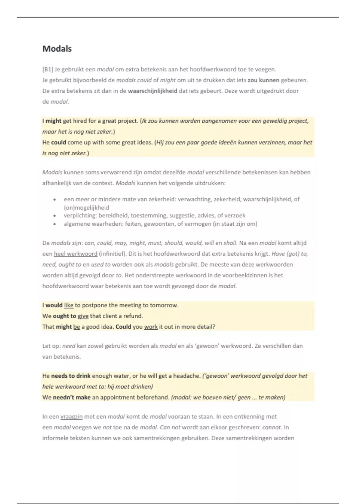 [B1] Je gebruikt een modal om extra betekenis aan het hoofdwerkwoord toe te voegen.