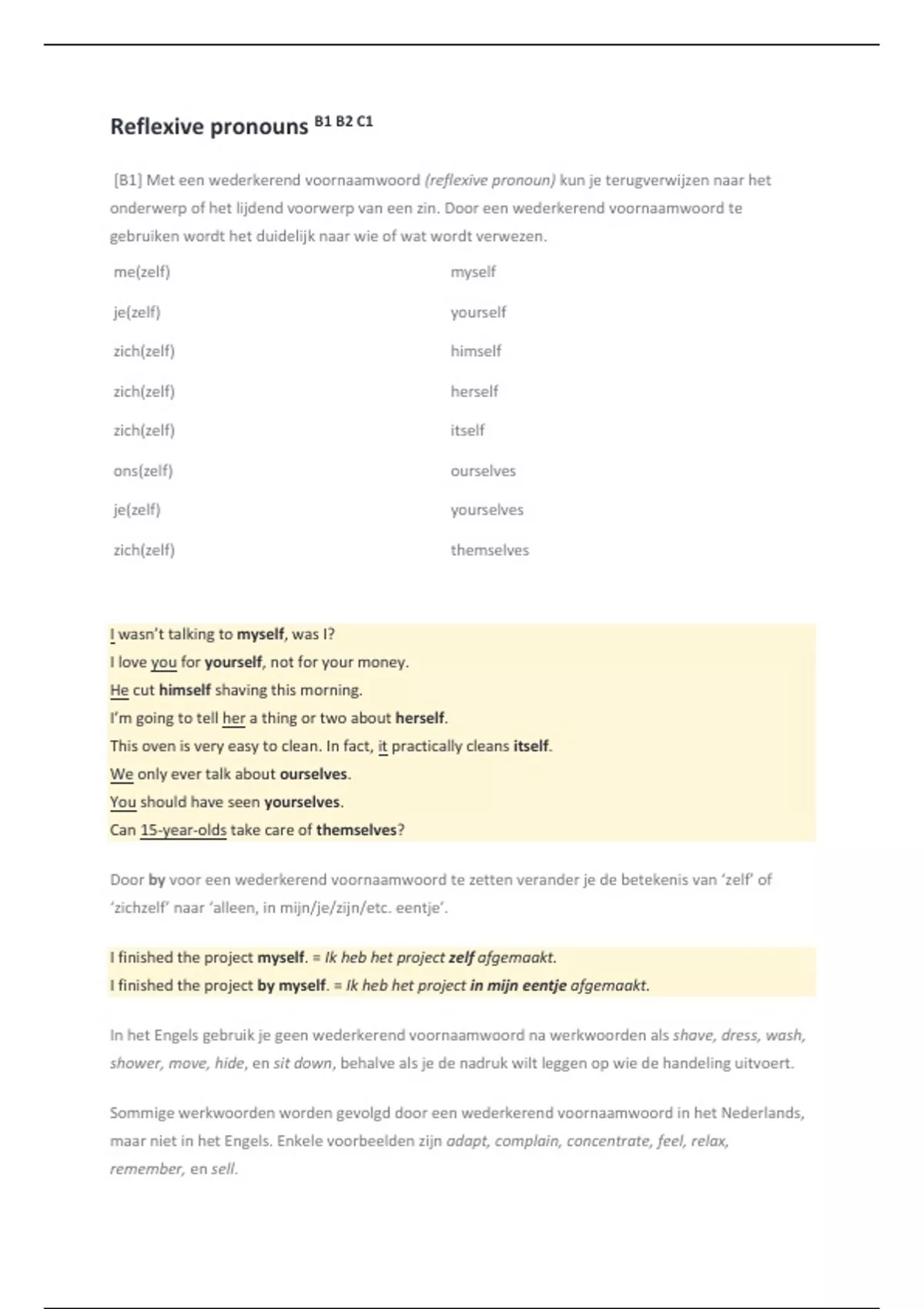 Reflexive pronouns B1 B2 C1
